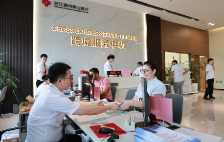 其一是面积达3000平方米的“跨境服务中心”。这里不仅是一个业务办理点,更是一个外商聚集的“国际社区”。稠州银行为符合条件的创业企业提供包括场地支持、公司注册、法律咨询、税务合规、资金支持到市场对接的 “一站式” 服务,吸引了过300家外贸企业、服务机构入驻,日均接待外商超百人,形成了强大的商业集聚效应。